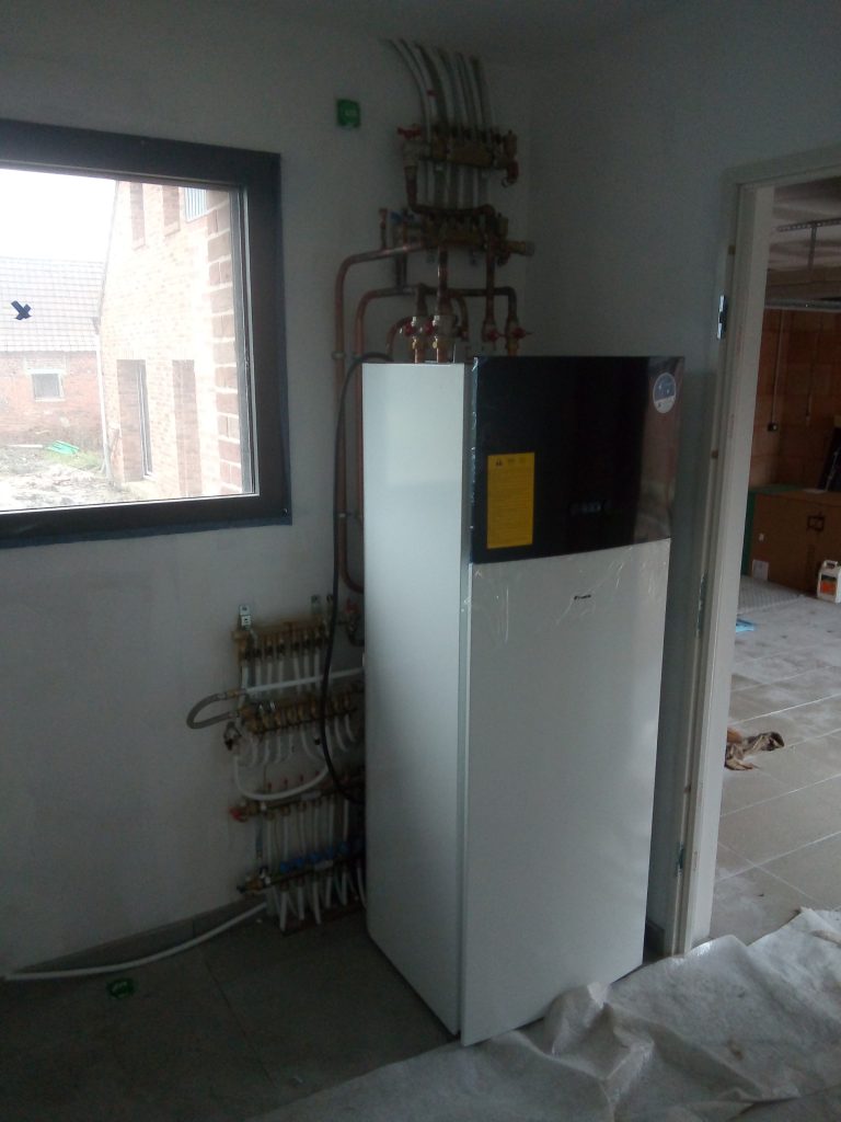 TEMPLEUVE - pose d'une pompe à chaleur sur maison neuve